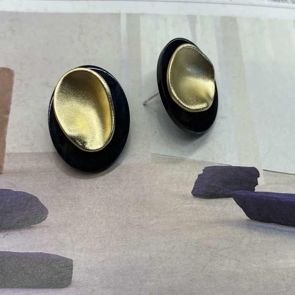 Δίχρωμα, καρφωτά σκουλαρίκια, στρόγγυλα Μαύρο και ματ χρυσό