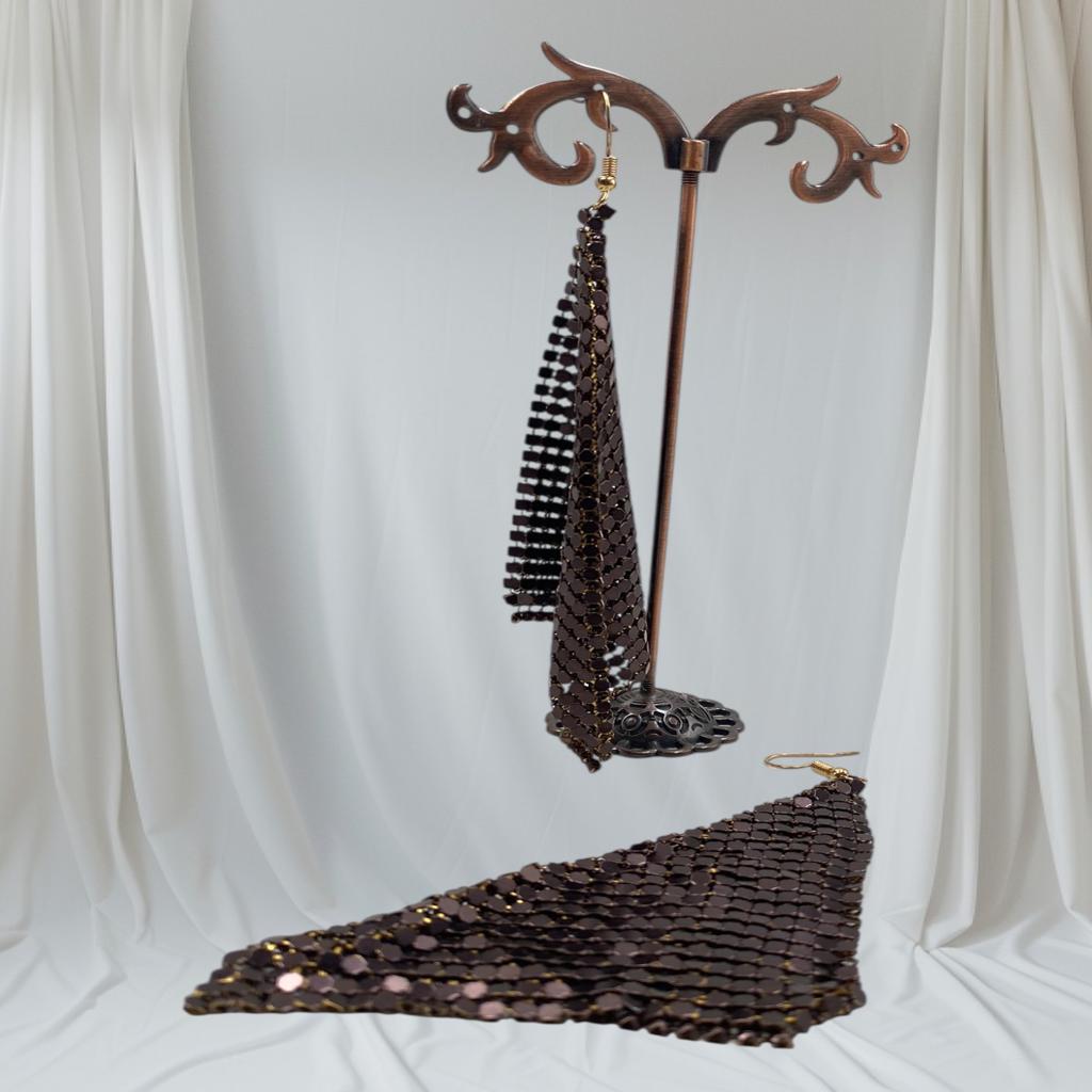 Σκουλαρίκια κρεμαστά, χυτά σαν ύφασμα, σε καφέ χρώμα