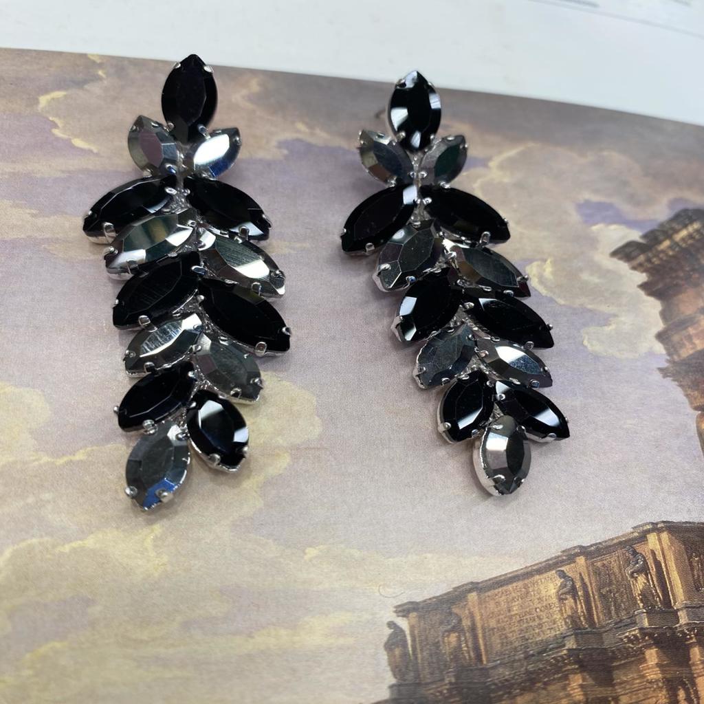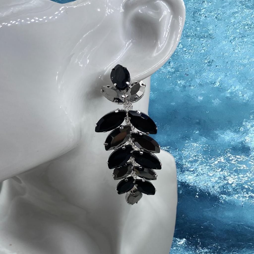 Σκουλαρίκια κρεμαστά, με μαύρα-γκρι φυλλαράκια