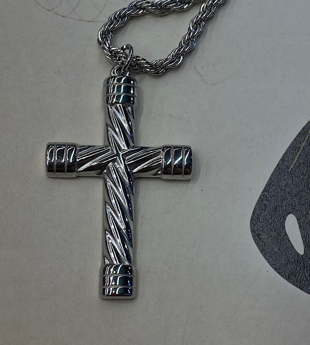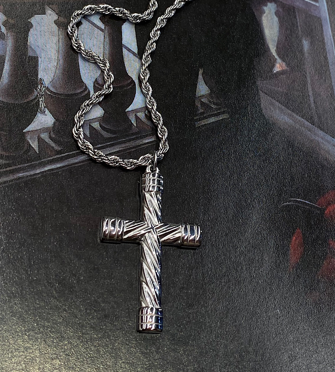 Ανδρικός σταυρός με ανάγλυφη επιφάνεια σε ατσάλινη αλυσίδα 60 εκ.