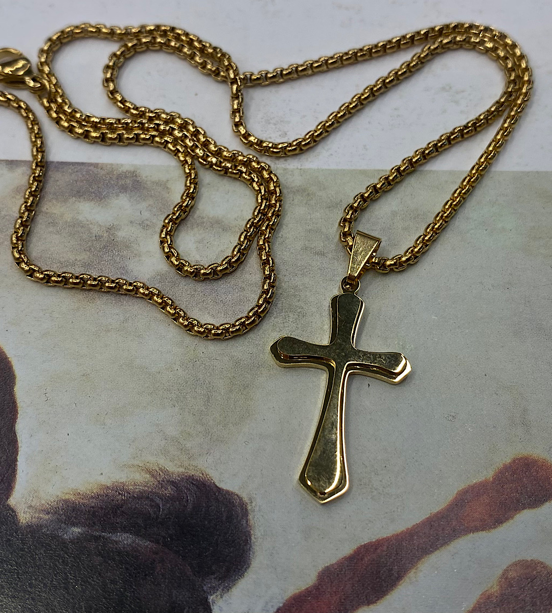 Ανδρικός σταυρός σε χρυσή απόχρωση σε αλυσίδα ατσάλινη 55 εκ.