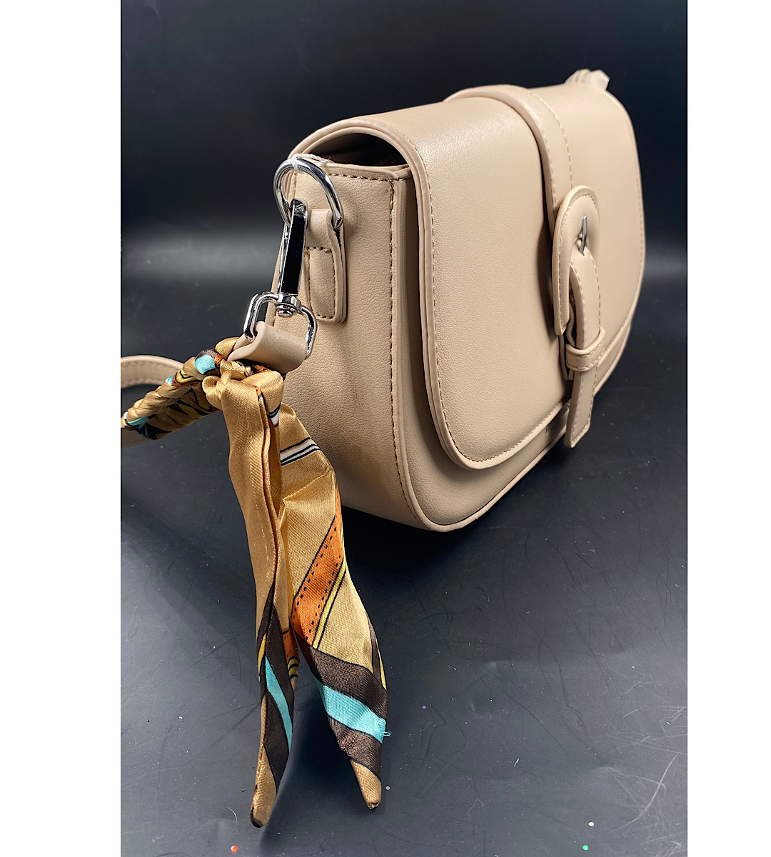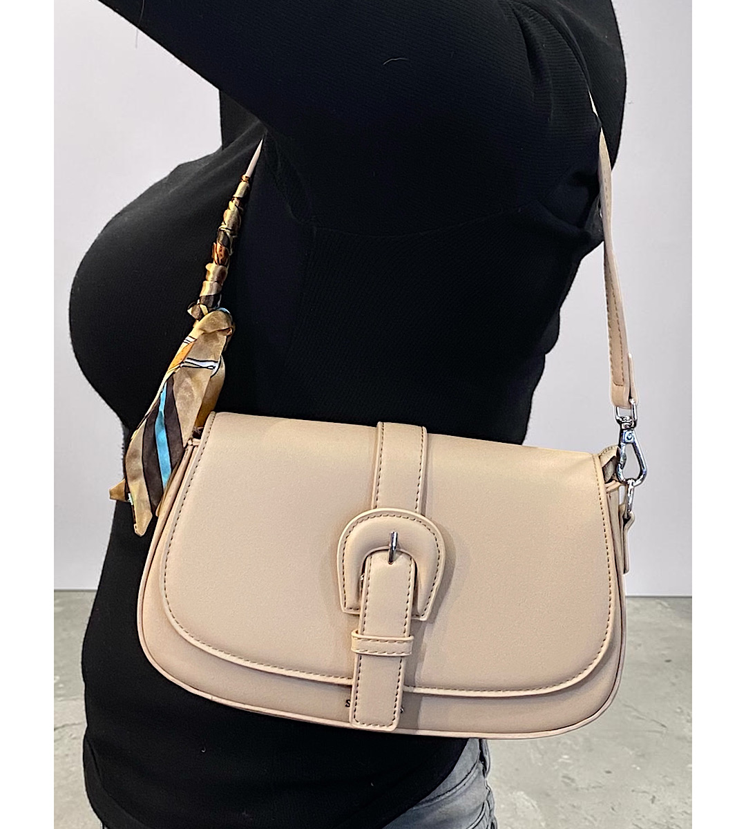 Μπεζ τσάντα ώμου με τυλιγμένο φουλάρι στο λουρί