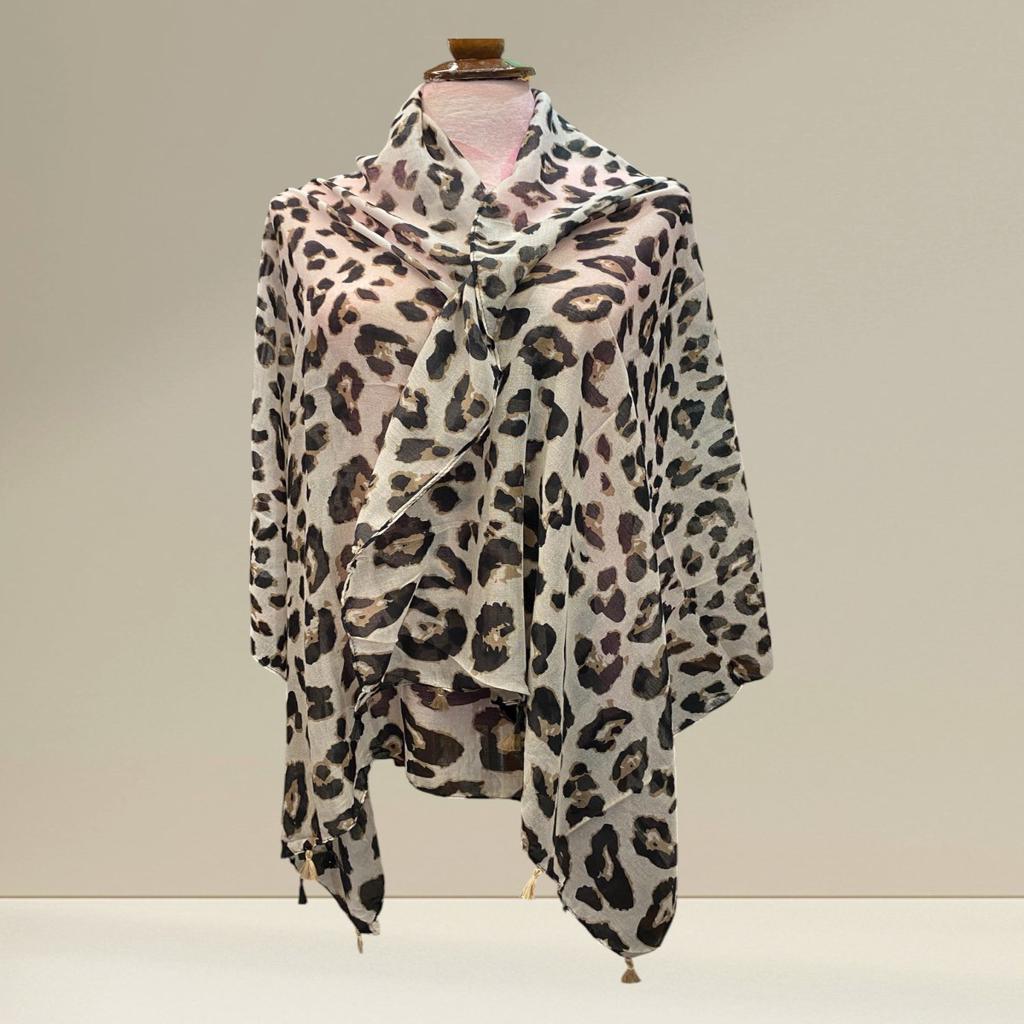 Γυναικείο φουλάρι animal print, με φούντες στο τελείωμα, σε διάφορα χρώματα