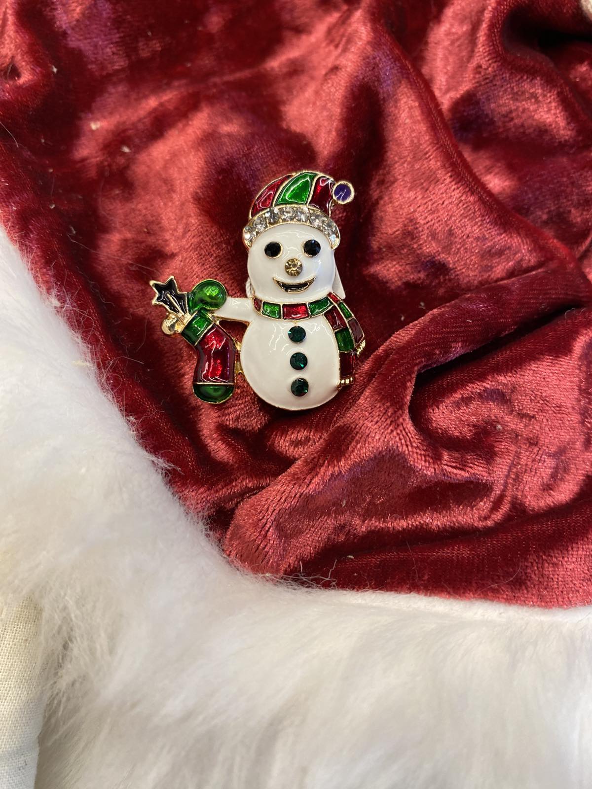 Χριστουγεννιάτικη καρφίτσα, χιονάνθρωπος ⛄ με σμάλτο και στρας