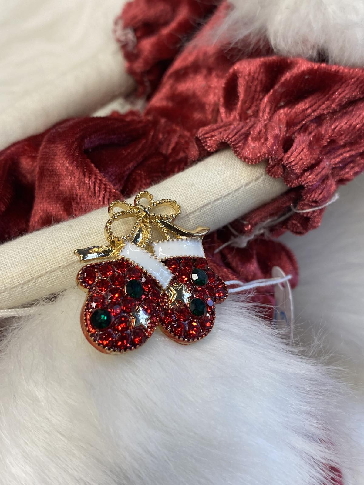 Χριστουγεννιάτικη καρφίτσα, γάντια με κόκκινα στρας