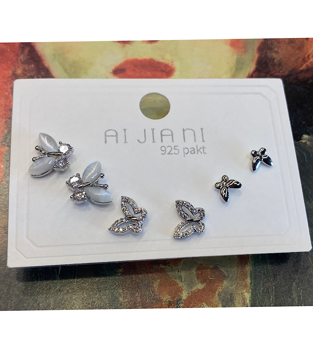 Σετ 3 ζευγάρια σκουλαρίκια καρφωτά με πεταλούδες